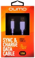 Кабель USB/Type-C Qumo, силиконовый, 1м, 3A, 18W (фиолетовый) (32961)