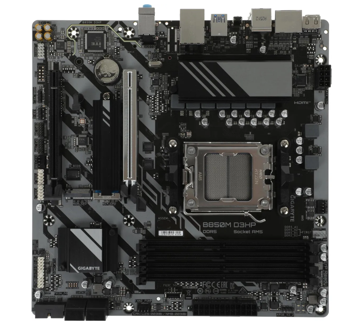 Мат. плата Gigabyte B850M D3HP, AM5, AMD B850, 4xDDR5, 4xSATA, 2xM.2, 1xPCIe 5.0 x16, 1xPCIe 3.0 x4, 1xHDMI, 2xDP, 1x 1Gb LAN, 3xUSB-A 3.2 Gen 1