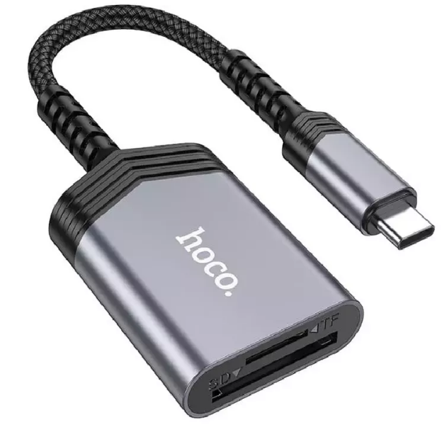 Устр-во чтения Card Reader Hoco UA25, Type-C (OTG), 2в1: SD, TF (MicroSD), кабель 19см, алюминий