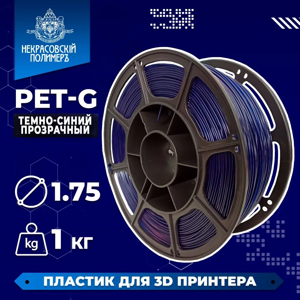 Пластик Некрасовский PETG Синий-Прозрачный для 3D-принтеров 1 кг (1.75) серия "Мастерская"