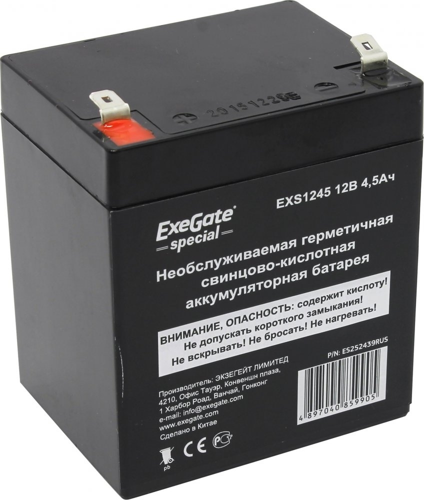 Батарея ExeGate ES252439RUS DT 12045/EXS1245 (12V 4.5Ah) клеммы F1
