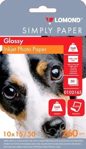 Бумага Photo Lomond (A6) "Simply" 10x15/260г/м2/50л./белый CIE148% глянцевое для струйной печати 0102165