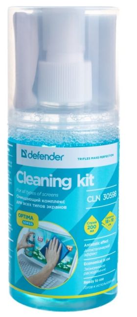 Чистящий спрей Defender для экранов / пластиковый флакон с пульверизатором 200 мл + микрофибра 20 х 20 см <30598>