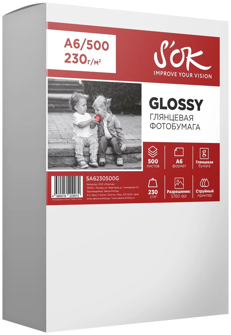Фотобумага CC Glossy ; 230gsm; A6*500 // Глянцевая; односторонняя 230г/м2; формат А6; 500 листов