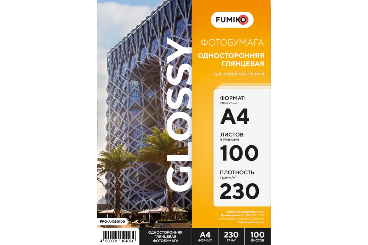 Фотобумага FUMIKO матовая односторонняя 230г/10x15/100л