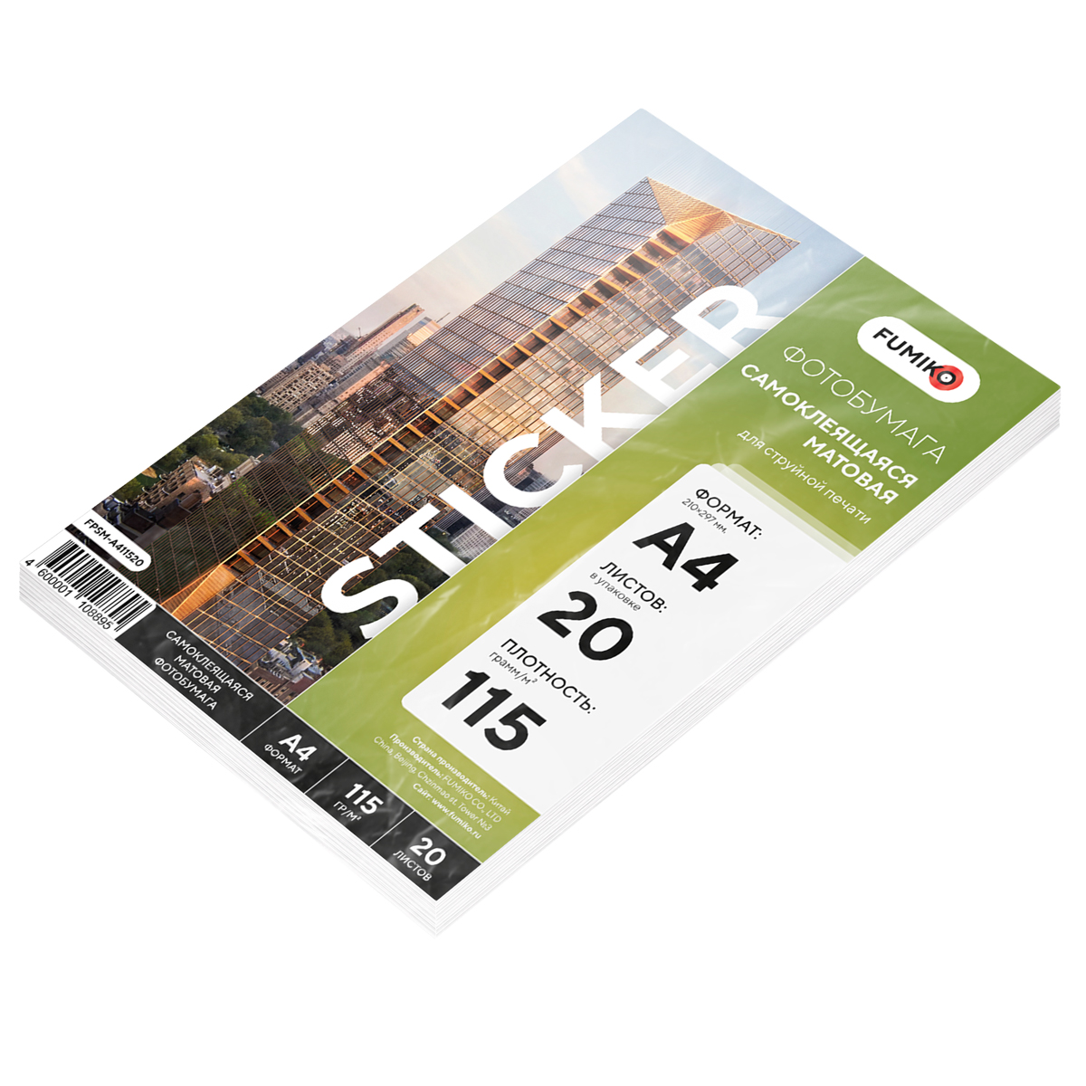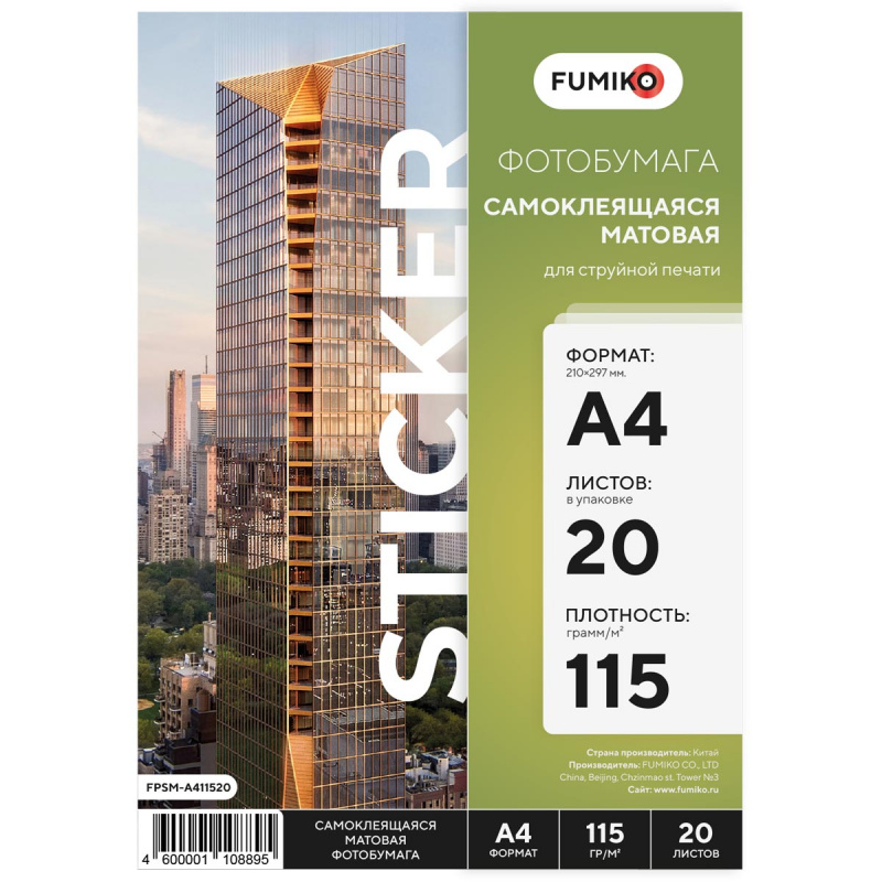 Фотобумага FUMIKO матовая самоклеющаяся 115г/А4/20л