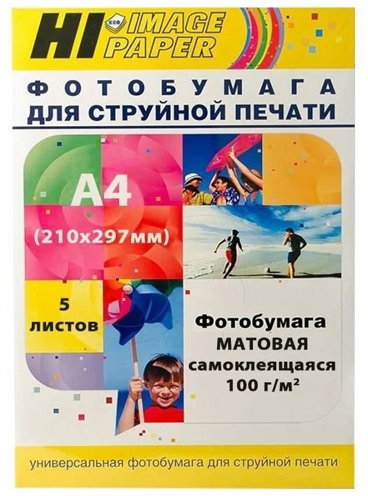 Фотобумага матовая самоклеящаяся односторонняя (Hi-image paper) A4, 100 г/м, 5 л.