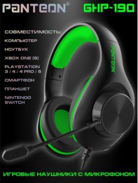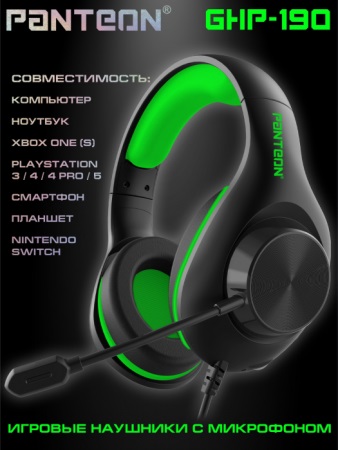 Гарнитура Jet.A GHP-190 черно-зеленые (2х3,5мм minijack+переходник, звук 2.0)