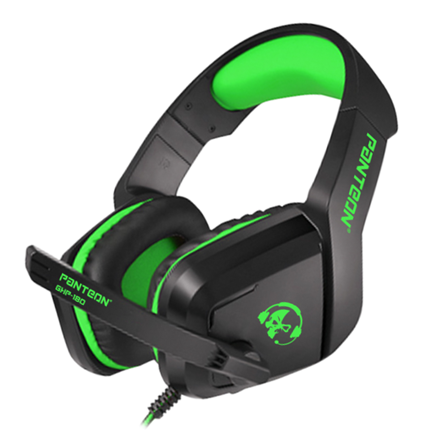 Гарнитура Jet.A GHP-250 черно-зеленая (2х3,5мм mini jack, многоцветная LED, звук 2.0)