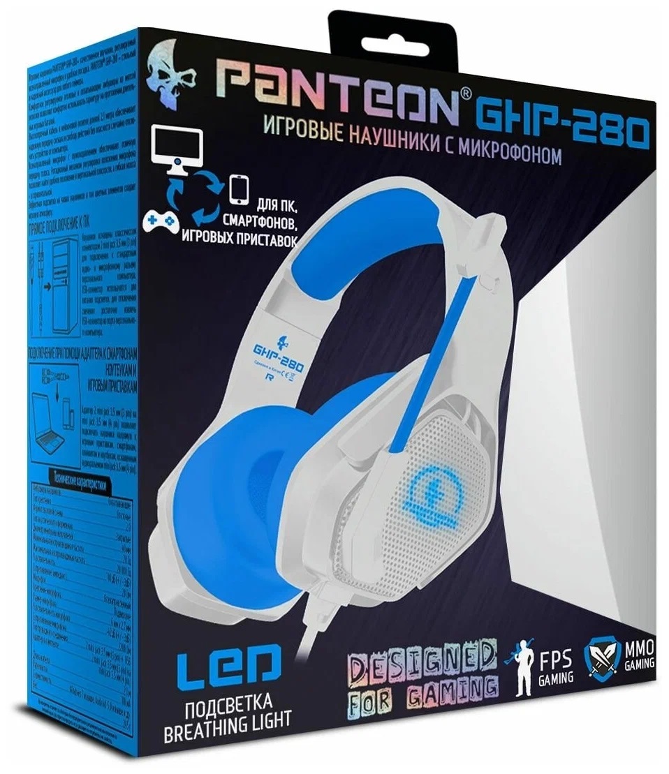 Гарнитура Jet.A GHP-280 бело-синяя.(2х3,5мм mini jack, многоцветная LED, звук 2.0)