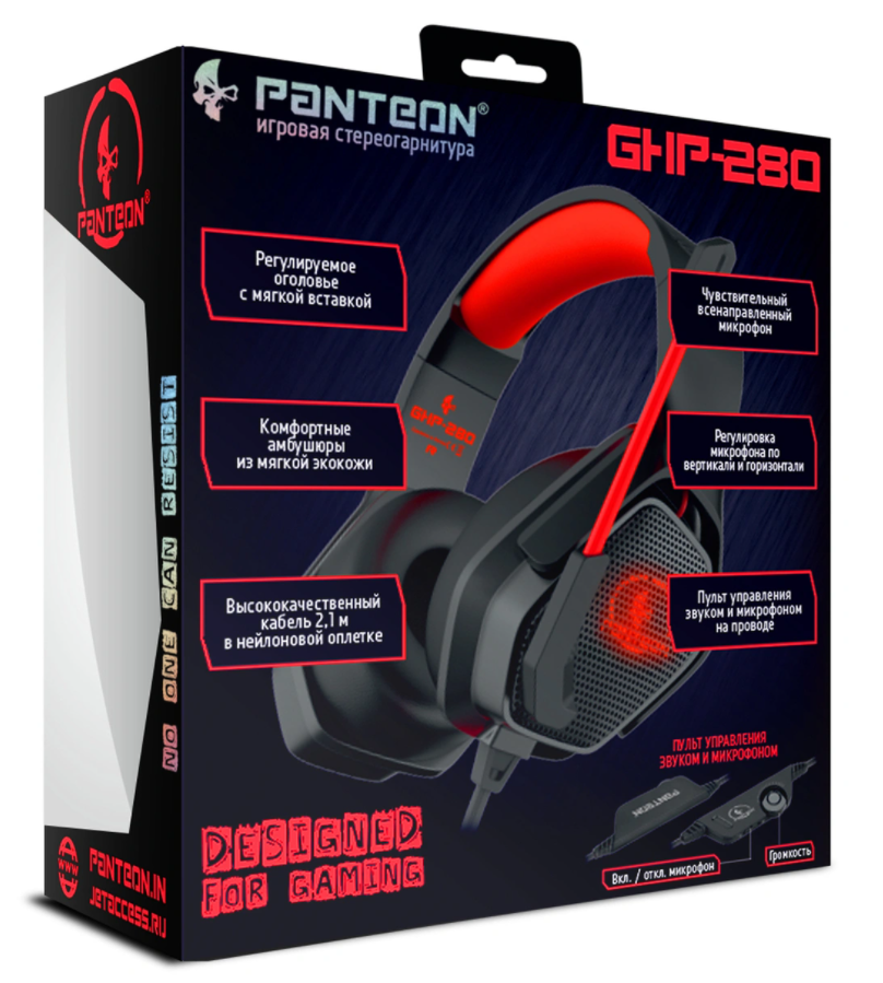 Гарнитура Jet.A GHP-280 черно-красная(2х3,5мм mini jack, многоцветная LED, звук 2.0)