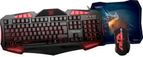 Игровой набор Qumo Axe Strike, проводная, 104+8 клавиш, встроенные подсветки общая + кнопок 7 цветов, мышь проводная, оптическая, коврик
