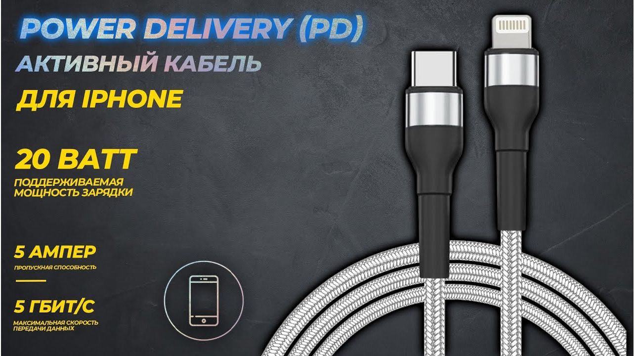 Кабель PD Type-C/Lightning, 5A, 20Вт, Jet.A JA-DC60 2м Черный