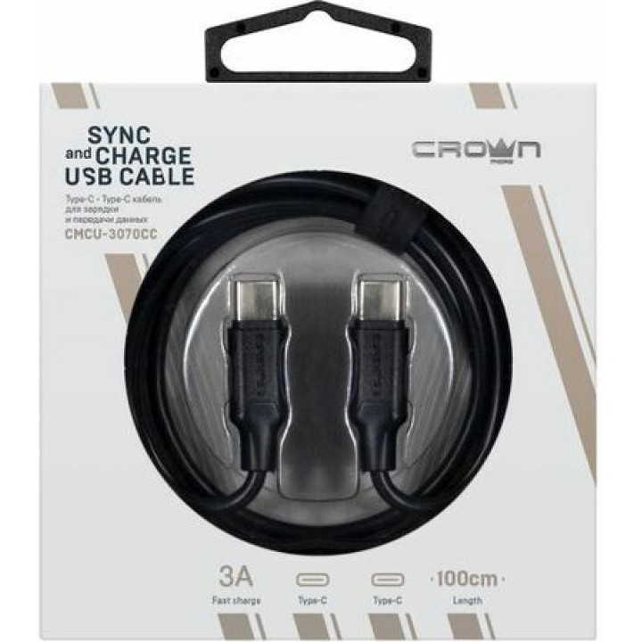 Кабель Type-C-Type-C Crown CMCU-3070CC black 1м