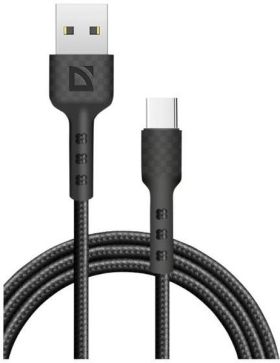 Кабель USB 2.0 AM-->Type-C Defender F181 1.0m, 2.4А, нейлоновая оплетка, черный. (87113BLA)