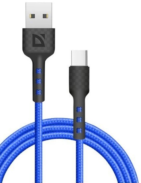 Кабель USB 2.0 AM-->Type-C Defender F181 1.0m, 2.4А, нейлоновая оплетка, синий. (87113BLU)