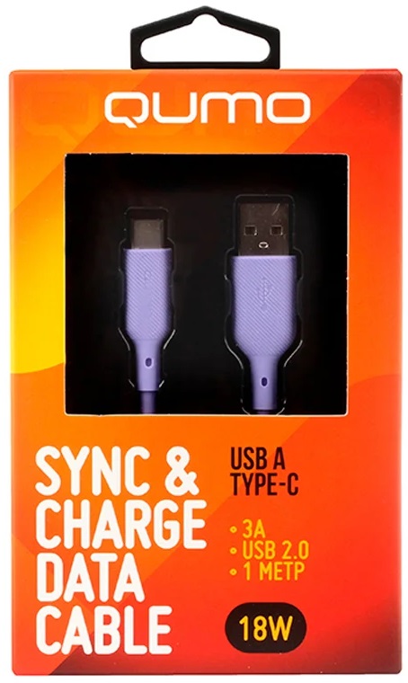 Кабель USB/Type-C Qumo, силиконовый, 1м, 3A, 18W (фиолетовый) (32961)