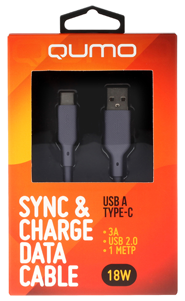 Кабель USB/Type-C Qumo, силиконовый, 1м, 3A, 18W (серый) 32962