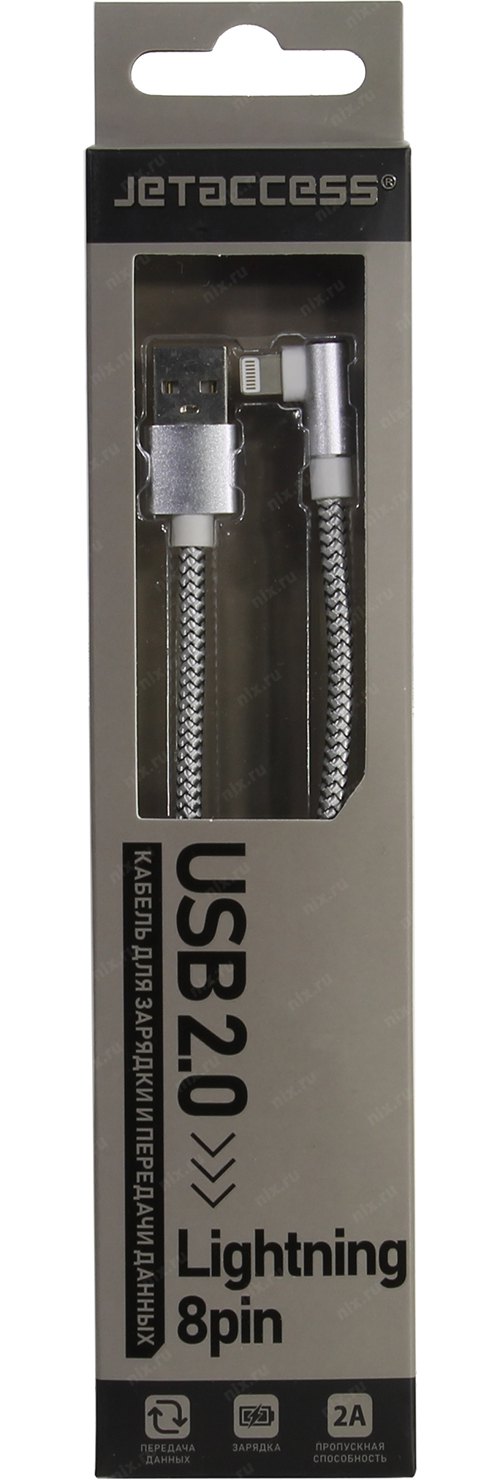 Кабель USB2.0/lightning 8pin, 2A, Jet.A JA-DC45 (в оплетке угловой) Silver 1м
