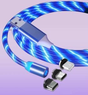 Кабель USB2.0/MicroUSB, длина 1м, Синий, светящийся. Магнитный