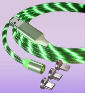 Кабель USB2.0/MicroUSB, длина 1м, Зеленый, светящийся. Магнитный