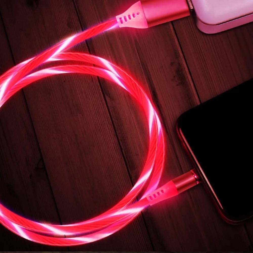 Кабель USB2.0/Type-C длина 1м, Красный, светящийся. Магнитный