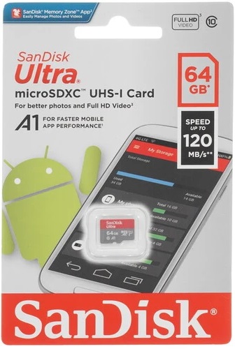 Карта памяти Micro SDHC 64Gb SanDisk UHS-I SDSQUA4-064G-GN6MN