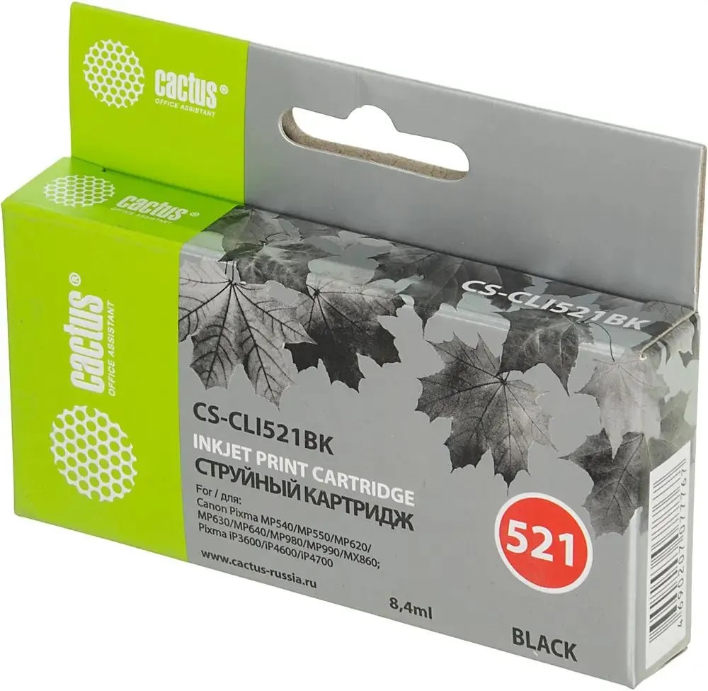 Картридж струйный Cactus CS-CLI521BK черный для Canon MP540/MP550/MP620/MP630 (8,2ml)