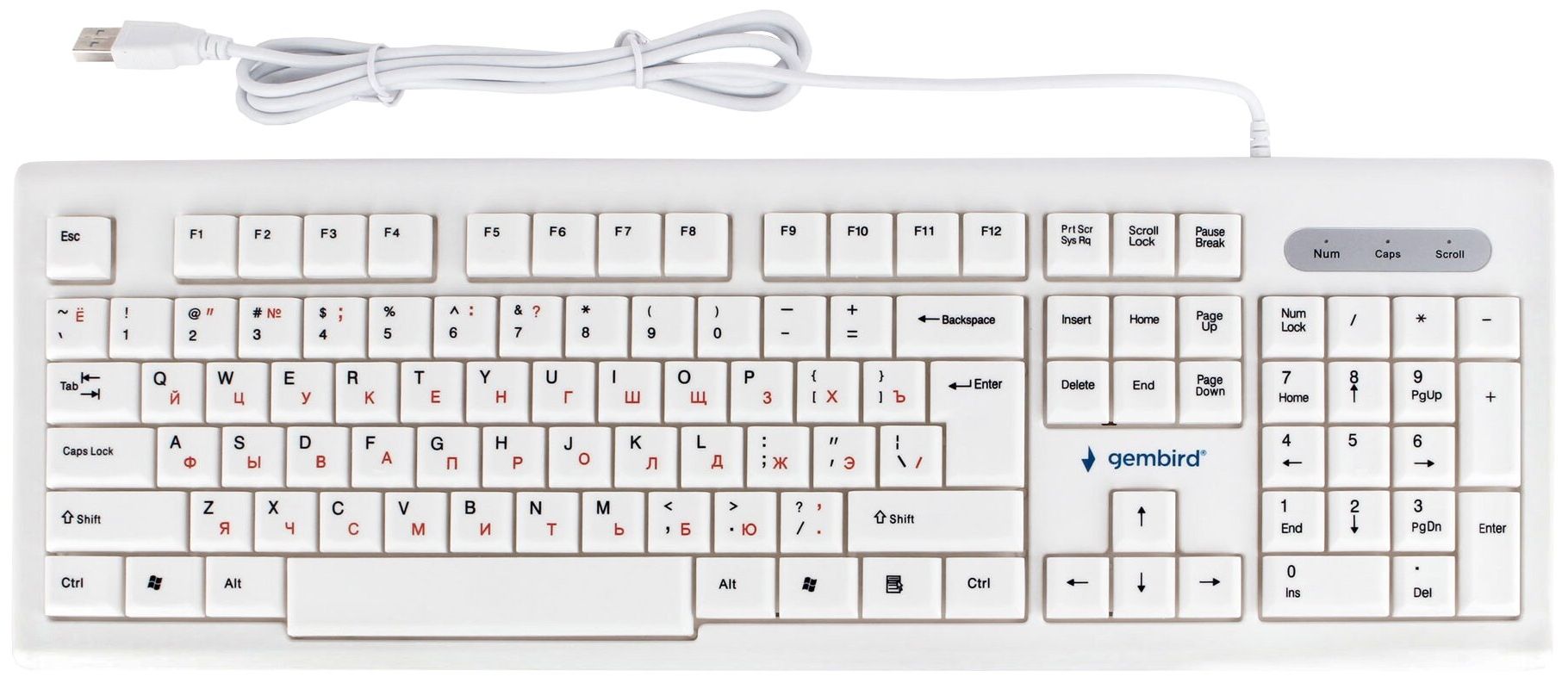Клавиатура Gembird KB-8354U, USB, бежевый/белый, 104 клавиши, кабель 1,45м