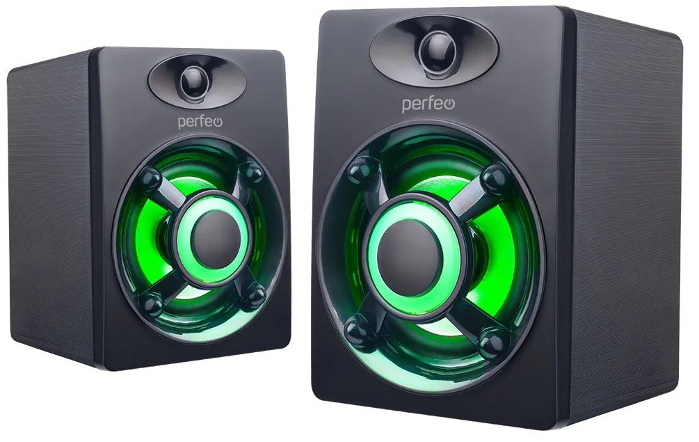 Колонки Perfeo "OREOL" 2.0, мощность 2х3 Вт, LED подсветка 7 цв., чёрн, USB