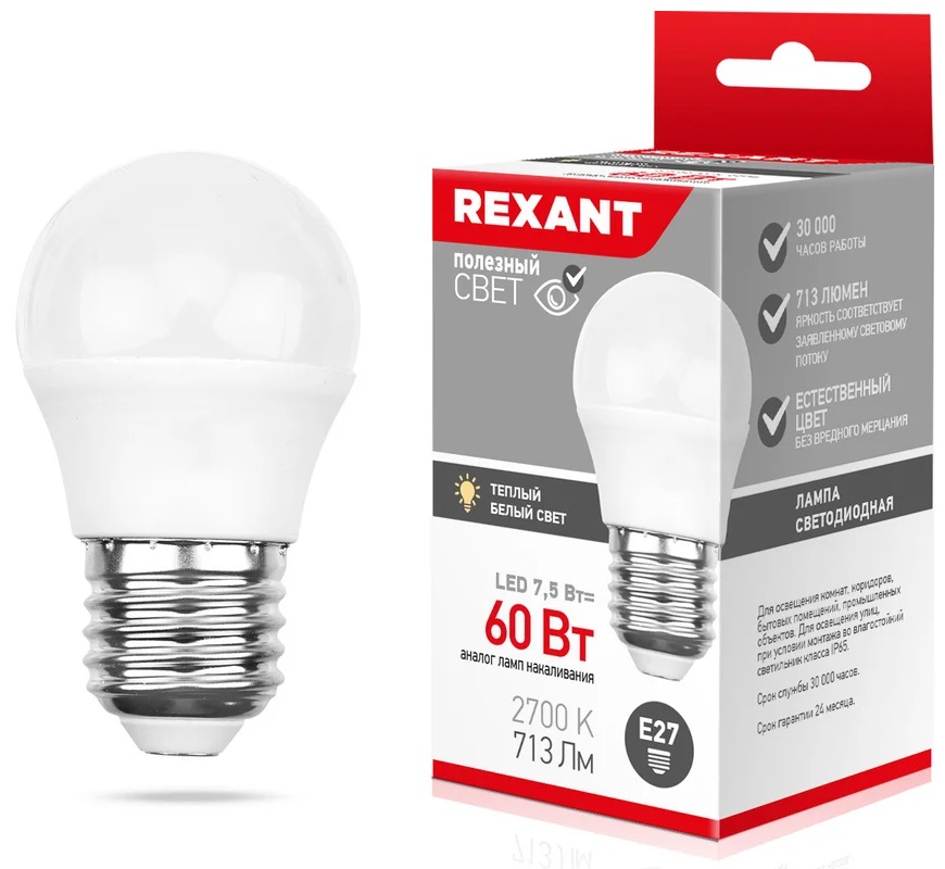 Лампа светодиодная Шарик (GL) 7,5 Вт E27 713 Лм 2700 K теплый свет REXANT