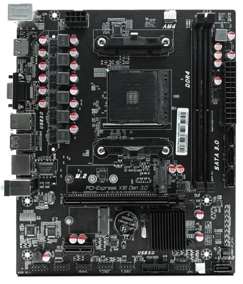 Мат. плата CBR A320M, AM4, AMD A320, 2xDDR4, 4xSATA, 1xM.2, 1xPCIe 3.0 x16, 1xPCIe x1, 1xHDMI, 1xVGA, 1x 1Gb LAN, 2xUSB-A 2.0, 2xUSB-A 3.0, mATX