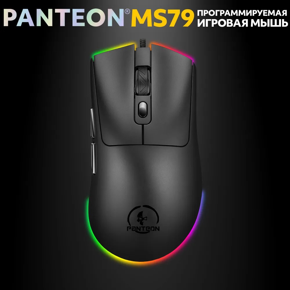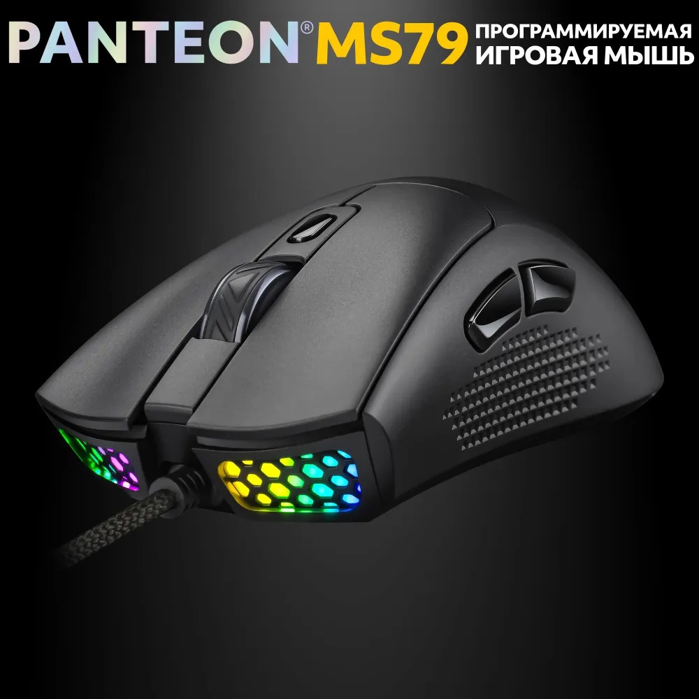 Мышь Jet.A PANTEON MS79 (130) черная, ультралегкая c RGB-подсветкой (400-7200 DPI, 6 кнопок, LED 13реж., ПО, кабель 170см, USB)