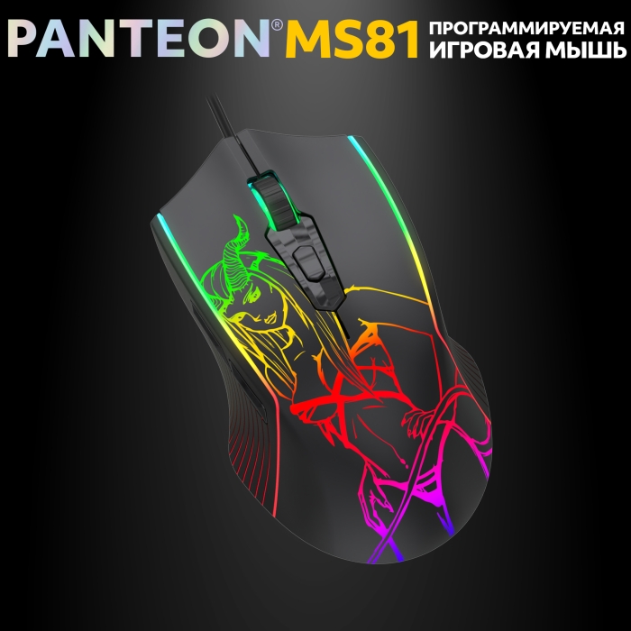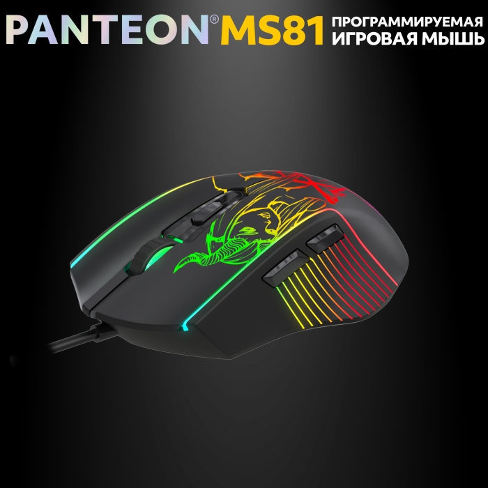Мышь Jet.A PANTEON MS81 (109) черная, программируемая (400-7200 DPI, 6 кнопок, LED 13реж., ПО, кабель 160см, USB)