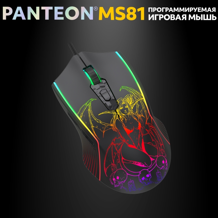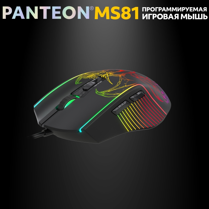 Мышь Jet.A PANTEON MS81 (110) черная, программируемая (400-7200 DPI, 6 кнопок, LED 13реж., ПО, кабель 160см, USB)