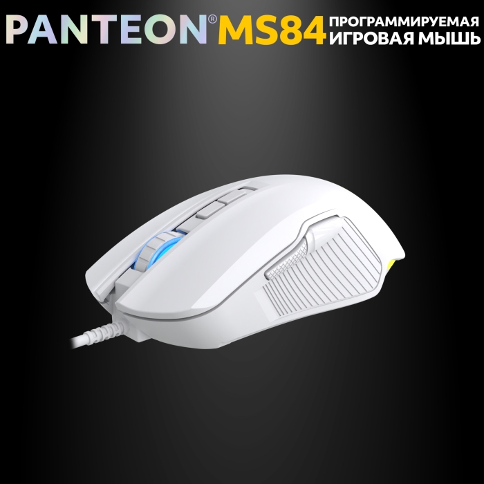 Мышь Jet.A PANTEON MS84 (116) белая, программируемая (400-7200 DPI, 7 кнопок, LED 13реж., ПО, кабель 160см, USB)