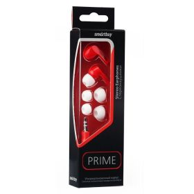 Наушники Smartbuy PRIME внутриканальные, динамики 10мм, плоский каб, красн, 3 пары вставок (SBE-130)