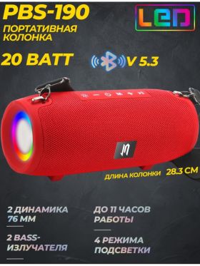 Портативная Bluetooth колонка Jet.A PBS-190 Red (2x10Вт дин., 3600mAh акк.LED подсветка)