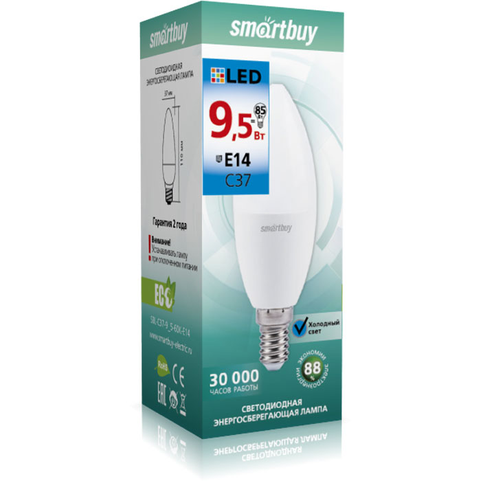 Светодиодная (LED) Лампа Smartbuy-C37-9,5W/3000/E14