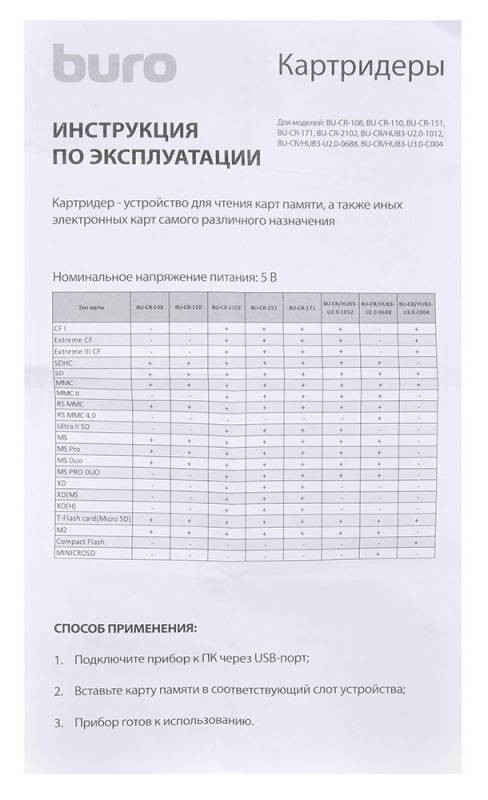 Питание картридера: