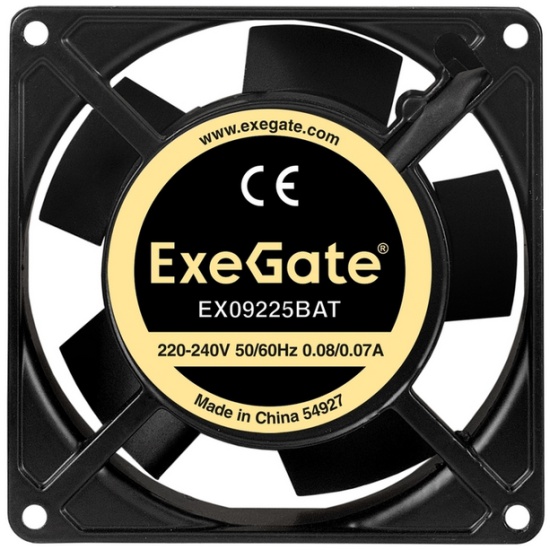 Вентилятор для 220 вольт клемы ExeGate EX289006RUS EX09225SAT 220В (92x92x25 мм, Sleeve bearing (подшипник скольжения), клеммы, 2500RPM, 34dBA)