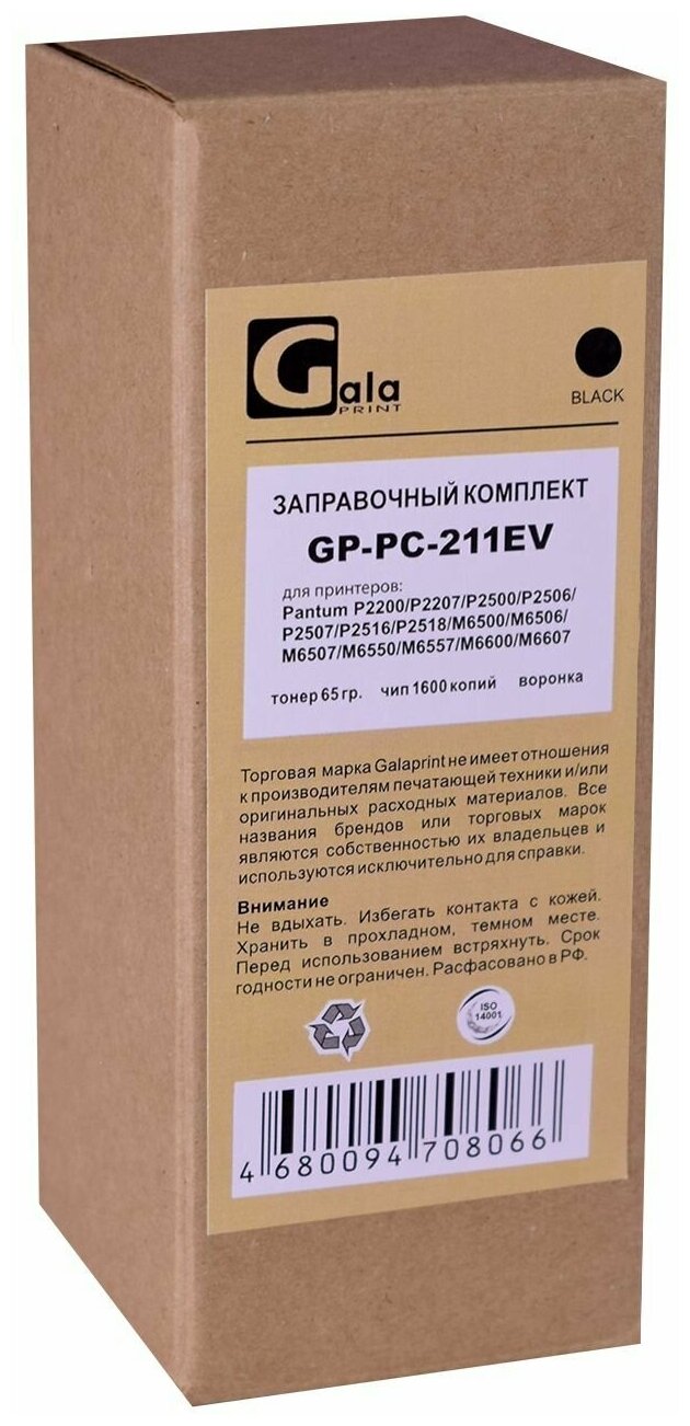 Заправочный комплект Pantum GP-PC-211EV для принтеров Pantum P2200/P2207/P2507/P2500W/P2200/P2207/P2507/P2500W (тонер 65гр + чип + воронка) GalaPrint