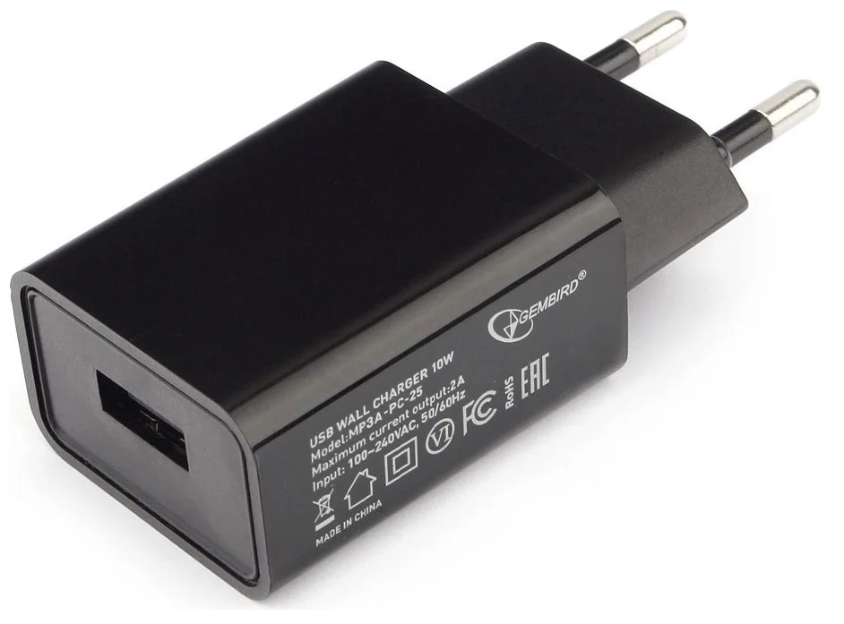 Зарядное устройство Cablexpert MP3A-PC-25 100/220V - 5V USB 1 порт, 2A, черный