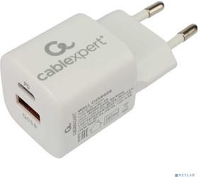 Зарядное устройство Cablexpert MP3A-PC-46, 20Вт, 3А, QC3.0/PD, 1xUSB, 1xType-C, белый, пакет