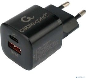 Зарядное устройство Cablexpert MP3A-PC-47, 20Вт, 3А, QC3.0/PD, 1xUSB, 1xType-C, черный, пакет