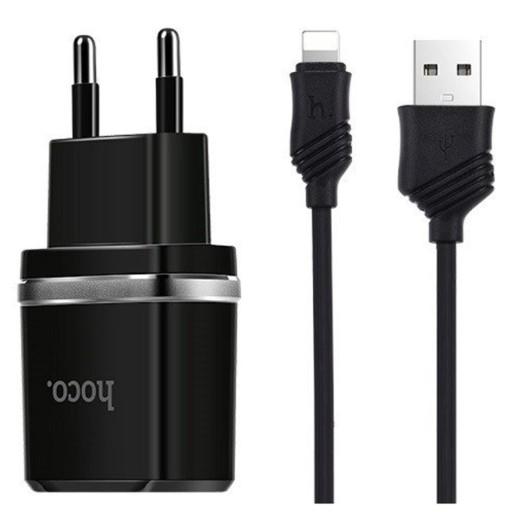 Зарядное устройство HOCO C12 HC-64107 / 1m/ 2 USB/ Выход: 12W/ Black + кабель