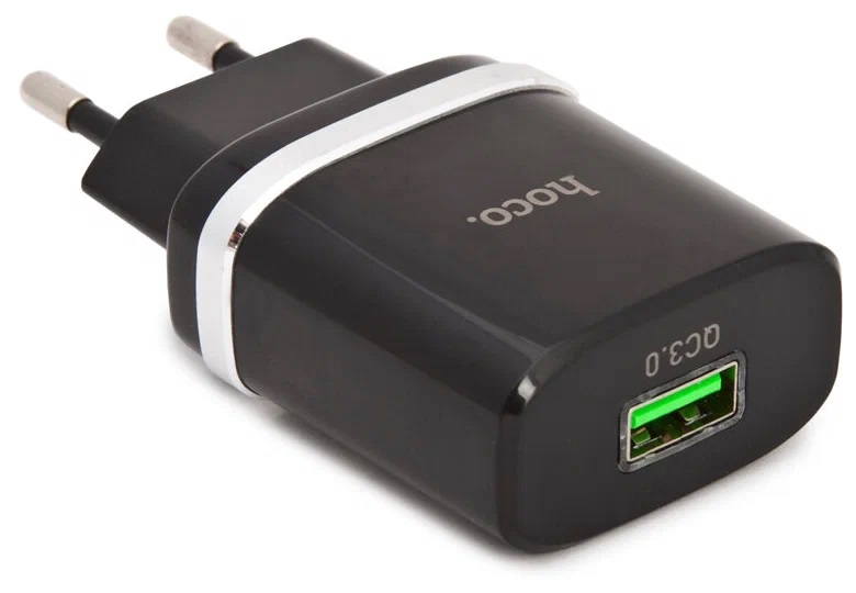 Зарядное устройство HOCO C12Q Smart QC3.0, один порт USB, Выход: 5V_9V_12V, 18W, черный без провода