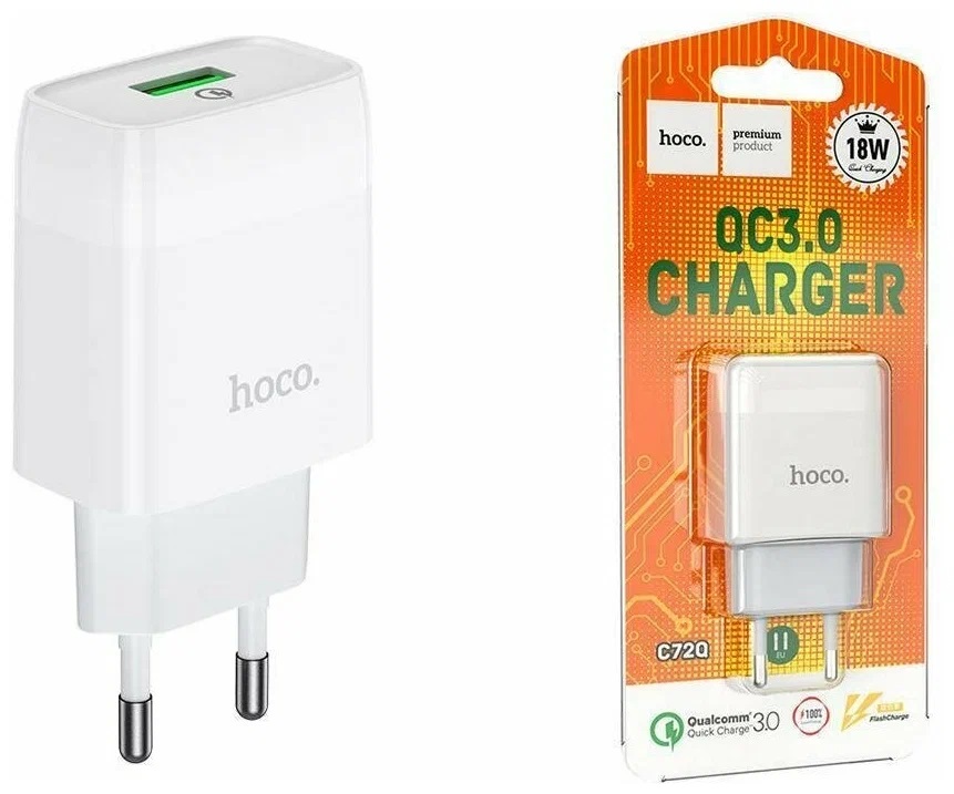 Зарядное устройство HOCO C72Q Glorious QC3.0 один USB порт, белый