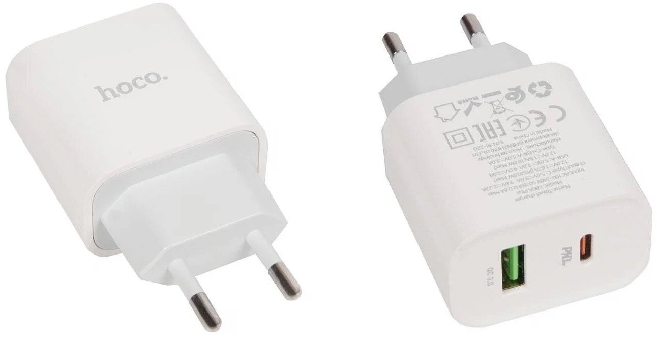 Зарядное устройство HOCO C80A Plus Rapido PD20W+QC3.0, 1xType-C, 1xUSB, белый