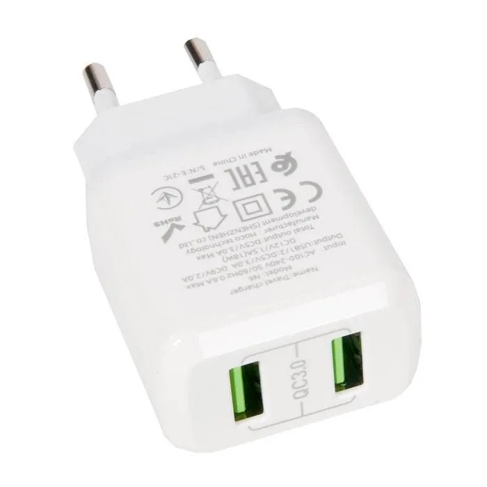 Зарядное устройство HOCO N6 Charmer QC3.0, 18W, два порта USB, 5V, 3.0A, белый
